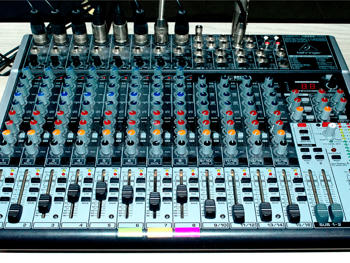 - Cabina de sonido Behringer, micrófonos alámbricos e inalámbricos para eventos musicales.